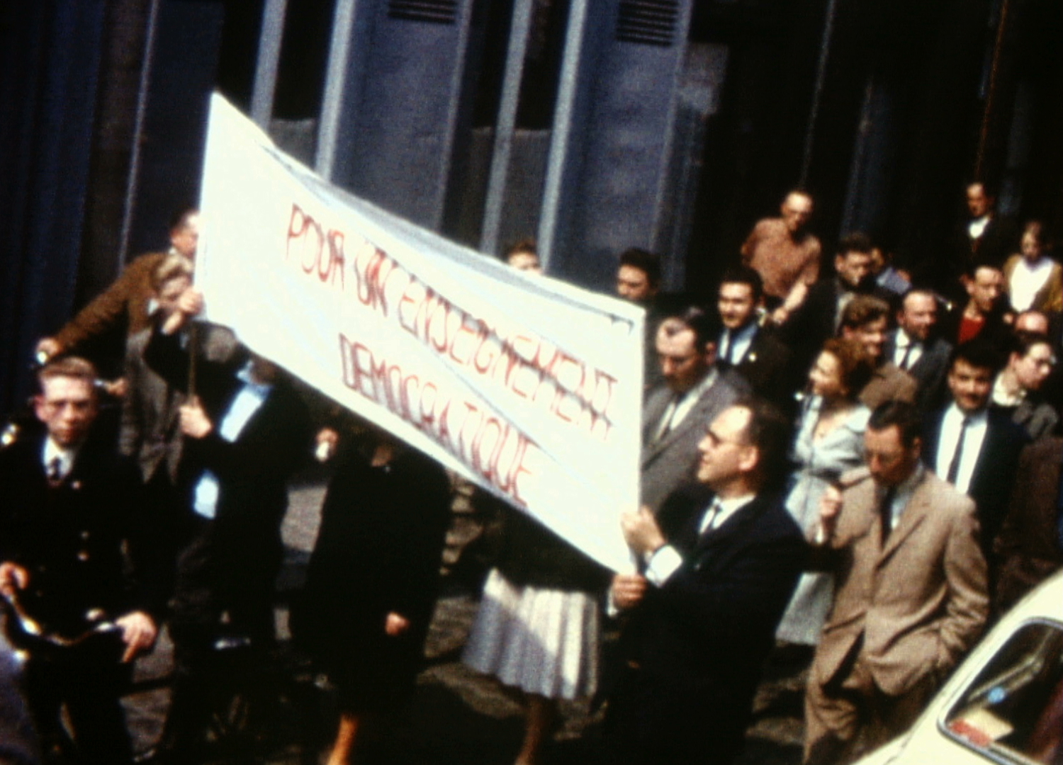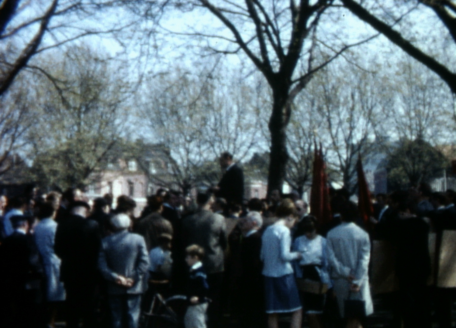 Puis sur une place un orateur, Emile Duhamel*, s'adresse aux manifestants, plans multiples de la personne.