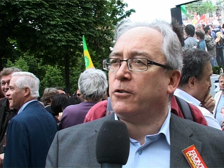 Marie-George Buffet, secrétaire du PCF, défile aux côtés de Jean-Luc Mélenchon, du PG, Christian Picquet, de la GU, et Patrick Le Hyaric, directeur du journal L'Humanité et tête de liste Front de gauche en Île-de-France. Elle décrit le Front de gauche comme un outil très efficace pour porter la parole populaire à Bruxelles ; Jean-Luc Mélenchon se réjouit également de la création de cette union, qui ouvre de belles perspectives à gauche.