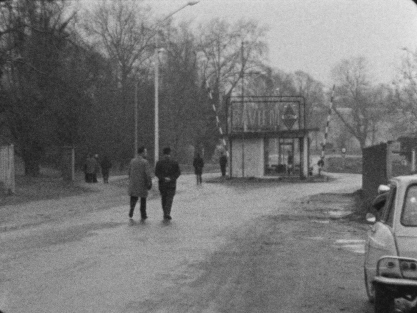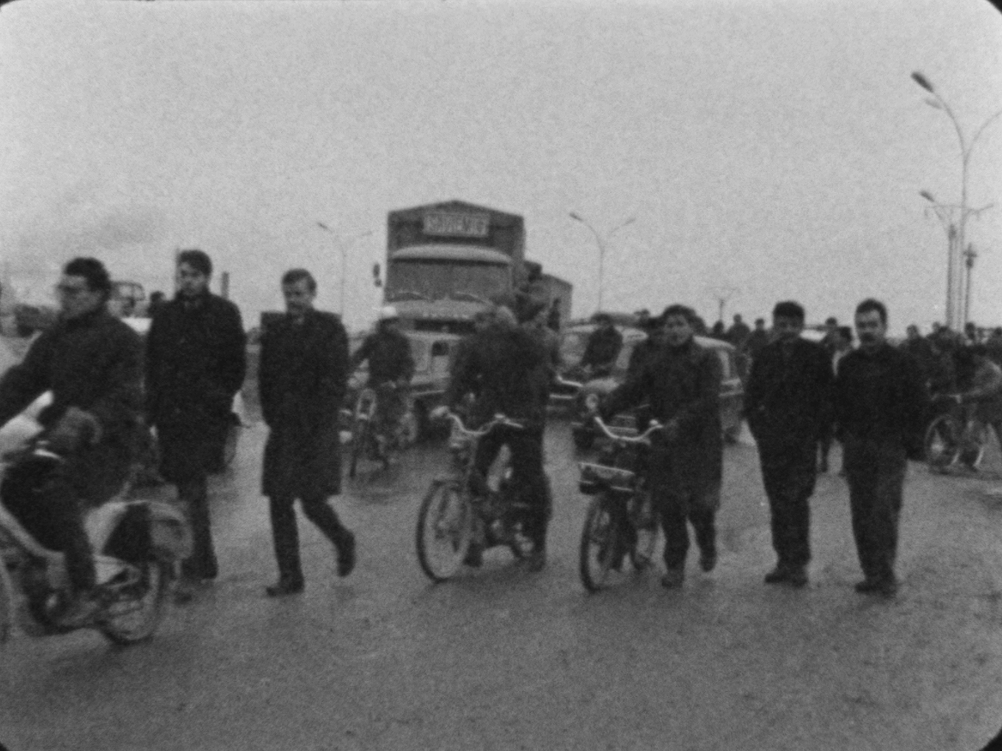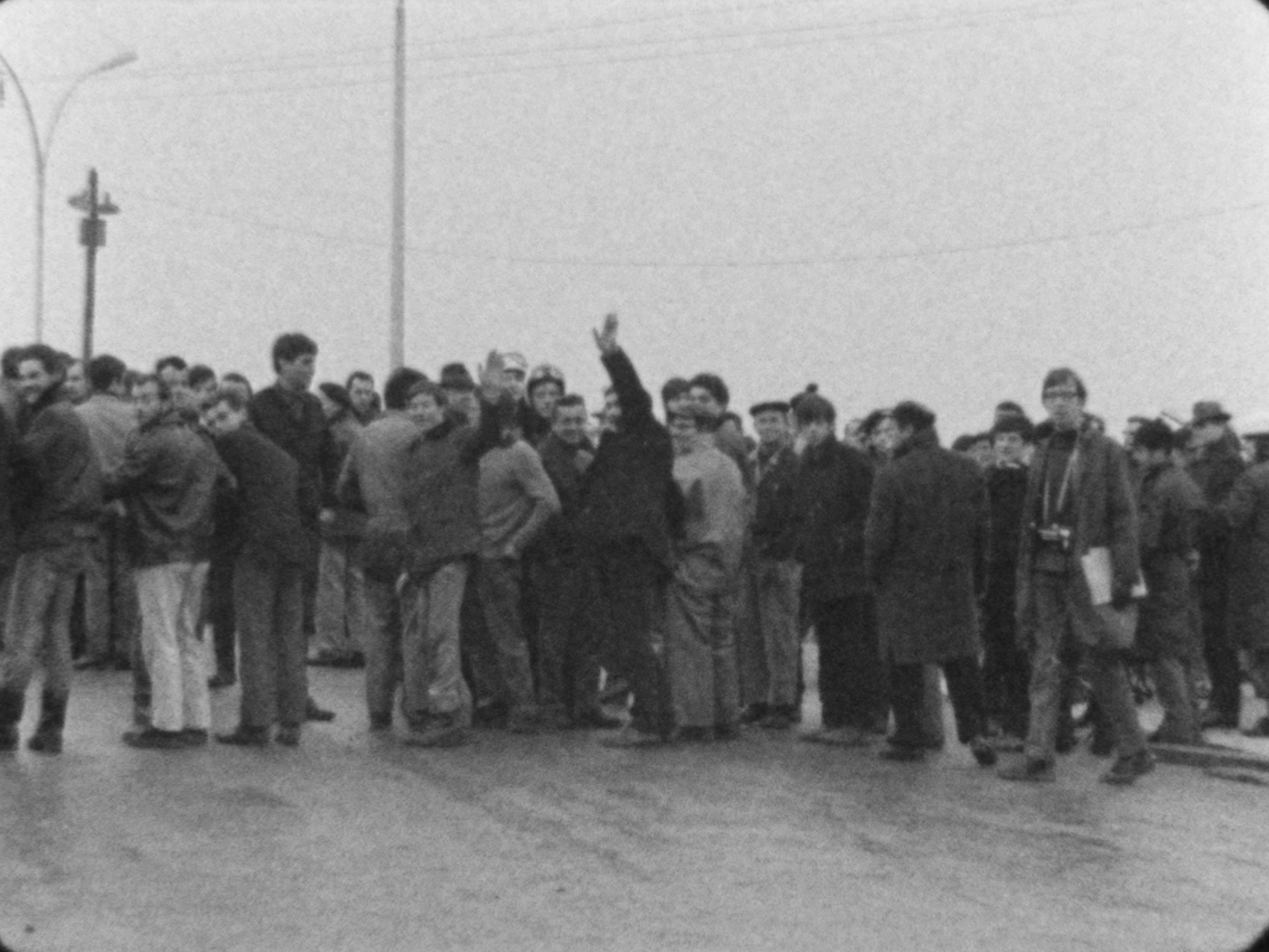 Rassemblement d'ouvriers à la porte de l'usine. Ils arrêtent les voitures. Parmi eux, des photographes. Arrivée à pied de deux représentants de la direction (?). La caméra les isole. Panneau : « SAVIEM, ici usine de Blainville ». Les représentants de la direction observent l'attroupement. Une discussion s'engage. Barricade à l'entrée de l'usine : les ouvriers coude à coude barrent le passage. Derrière eux, des camions SAVIEM. Les représentants de la direction rebroussent chemin. Plan général du site. Marche des ouvriers à pied ou à vélo, accompagnés par les camions SAVIEM, suivis par une file de voiture. À nouveau le panneau : « SAVIEM, ici usine de Blainville ».