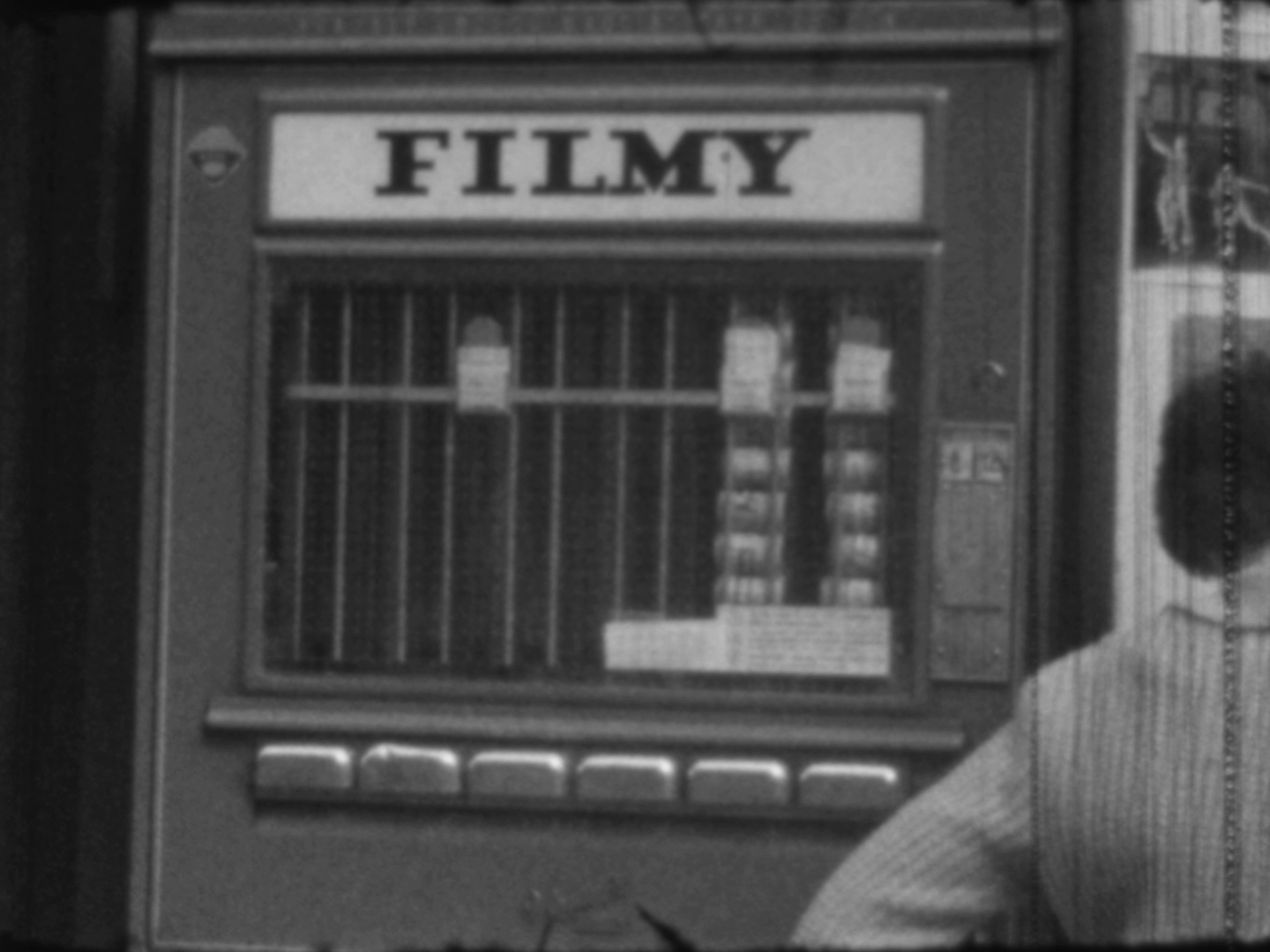 Voyage en autocar. Un énorme barrage hydroélectrique. Des constructions récentes et des immeubles en construction. Des vitrines de magasins (mannequins en vitrine, bouteilles de vin, conserves, magasin d’appareils cinématographiques, maroquinerie, magasin de porcelaine. Un cinéma (Filmy inscrit sur le guichet) Des passants et des automobile, les trottoirs et passages piétons. Une route de campagne, les paysages défilent par la fenêtre du bus