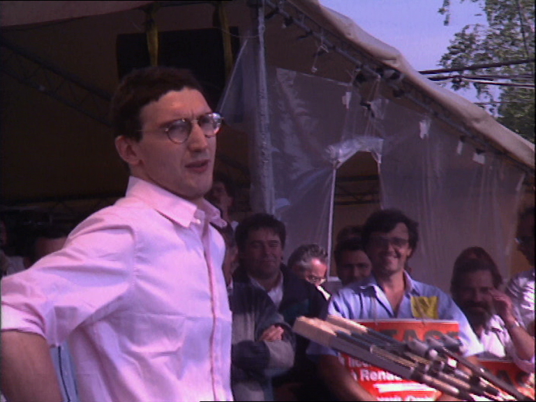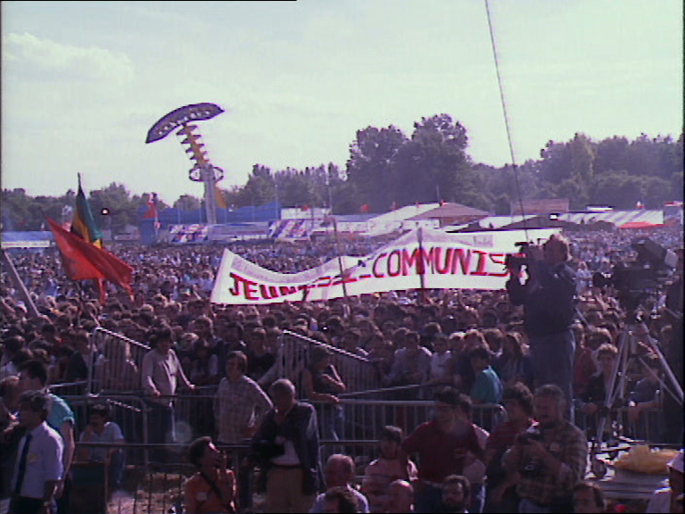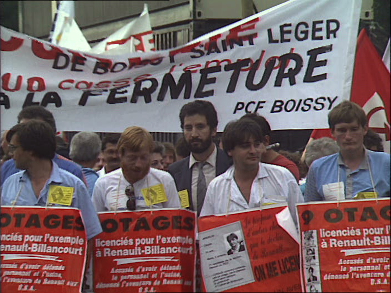 Les premières images montrent André Lajoinie discuter dans les allées de la Fête. On aperçoit brièvement le cinéaste René Vautier, habillé en bleu, devant la grande scène, puis les syndicalistes de Renault licenciés et connus comme les 9 de Renault, puis les 10 de Renault ou 10 de Billancourt. Les banderoles qu'ils arborent exigent la "réintégration de Claude Jacquelin et des 9 otages".
