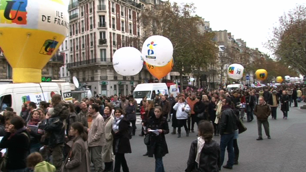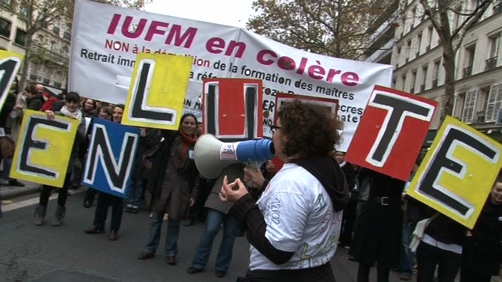 Le 24 novembre 2009, enseignants et postiers manifestent à Paris. Les premiers s'opposent à la réforme de l’Éducation Nationale portée par le ministre de Nicolas Sarkozy Xavier Darcos, qui prévoit la suppression de 16 000 postes d'enseignants à la rentrée 2010, ainsi que la fin programmée des IUFM (Institut Universitaire de Formation des Maîtres). Les seconds craignent la privatisation imminente de la Poste.