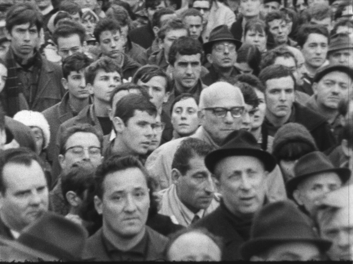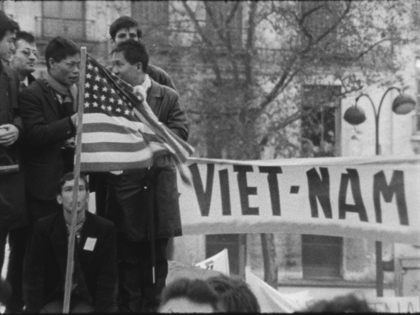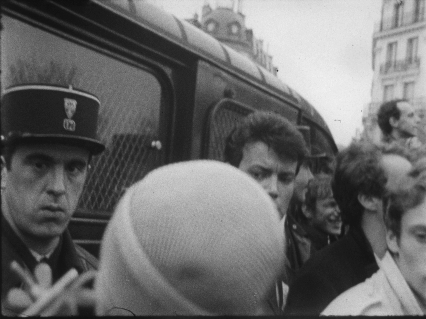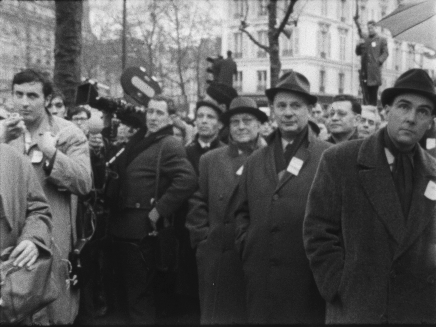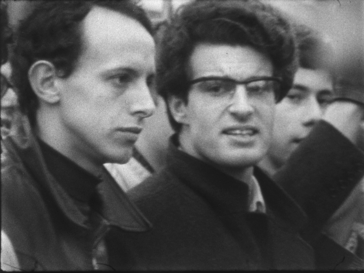 A l'issue des discours, la foule se dirige vers le Faubourg-Saint-Antoine. On aperçoit de nombreux jeunes gens défilant sous des banderoles, dont Alain Krivine, exclu de l'UEC quelques temps auparavant et confondateur de la JCR (Jeunesse Communiste Révolutionnaire)