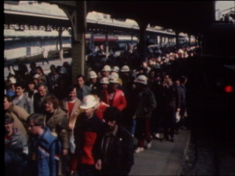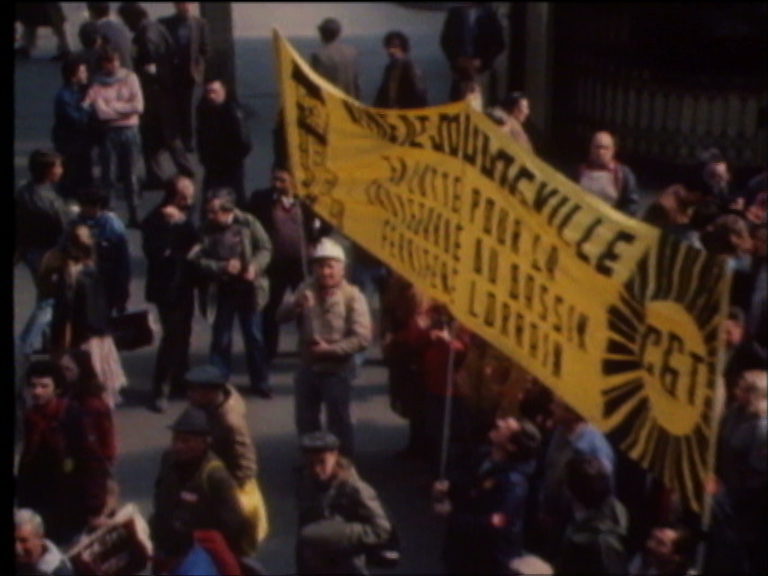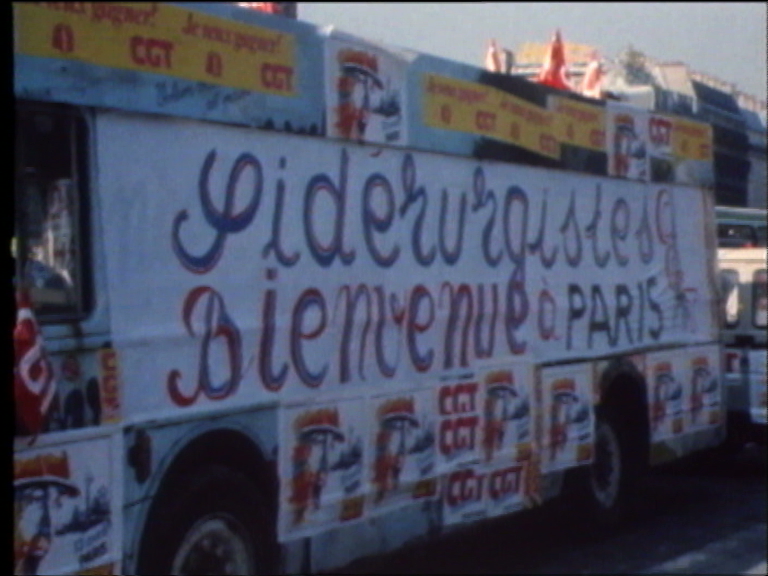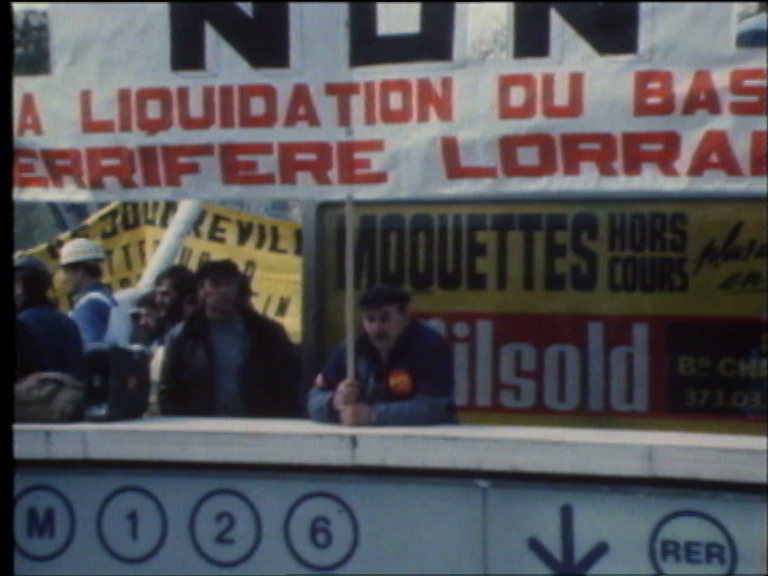 A quai, un caméraman filme l'arrivée d'un train déversant un flot de sidérurgistes venus manifester à Paris. Badges Sacilor, Fragile. Slogan : "Sacilor vivra !". Beaucoup d'hommes sont venus avec leur casques de chantier. Une pancarte CFDT. Une sirène retentit. Longue scène de foule dans la gare de l'Est. Drapeaux rouges marqués d'une croix de lorraine.