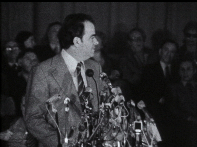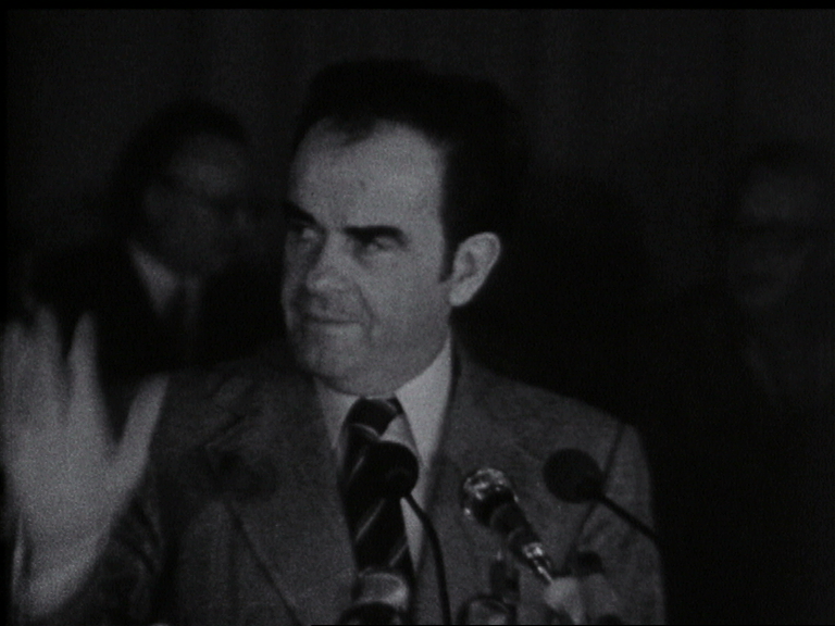 Robert Fabre prend la parole pour les Radicaux. Pour lui, la France est devenue le pays du « capitalisme sauvage » ; il critique le pouvoir en place : « quels changements peut-on attendre de ceux qui ont eu pendant 16 ans les pleins pouvoirs pour tout faire et qui avouent aujourd'hui que tout reste à faire. Ont-ils l'espoir d'être crus des électeurs ? ». Clap. Noir à l'image. Fabre enchaîne filmé en plan plus large : « Il faut en finir avec la suprématie absolue du capital du travail », « il faut retrouver le temps de vivre ». À sa gauche, à la tribune, sont assis François Mitterrand (qui joue avec son étui à lunettes !), Georges Marchais, Hélène Langevin-Joliot. Robert Fabre en appelle à « la solidarité au niveau de l'Humanité toute entière ». Clap. Robert Fabre quitte la tribune pour aller s'asseoir. La foule scande toujours : « union populaire ». Noir à l'écran.