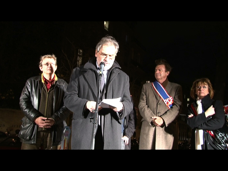 Plusieurs élus communistes sont rassemblés devant l'Assemblée Nationale le 24 novembre 2009 pour protester contre le projet de Grand Paris voulu par le président Nicolas Sarkozy, qui a confié le dossier à un comité piloté par Edouard Balladur. Le rapport livré par cette commission préconise entre autres la fusion administrative de Paris et de la petite couronne, entraînant la disparition des conseils généraux de la Seine-Saint-Denis, du Val-de-Marne et des Hauts-de-Seine. Plusieurs élus communistes prennent la parole pour expliquer leurs craintes par rapport à ce projet, dont Pierre Laurent, secrétaire du PCF, Nicole Borvo-Cohen-Seat, sénatrice de Paris, Christian Favier, président du Conseil Général du Val de Marne (94), Francis Parny, Vice-président de la Région Ile-de-France, et Laurent Klajnbaum, responsable du secteur Communication du PCF.